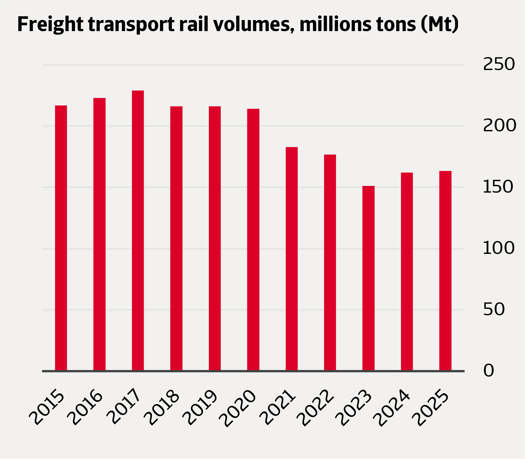 Over the years, the performance of the freight rail network has deteriorated sharply (figure 3). By 2023, the freight rail volumes were down one-third from their 2017 peak, reaching the lowest levels in years. This decline is not only due to underinvestment but also to worsening security conditions, like cable theft and vandalism.